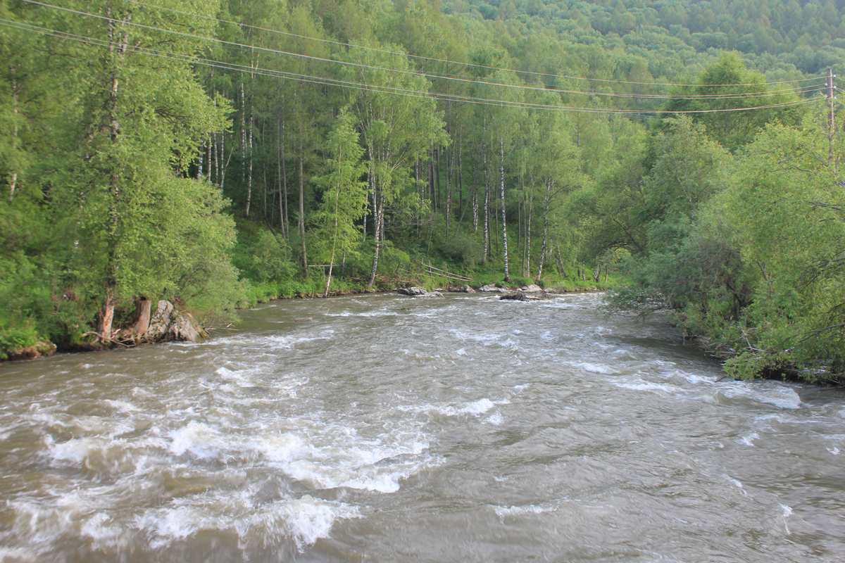 Бурные воды реки Ануй после наводнения на Алтае в 2014 году -