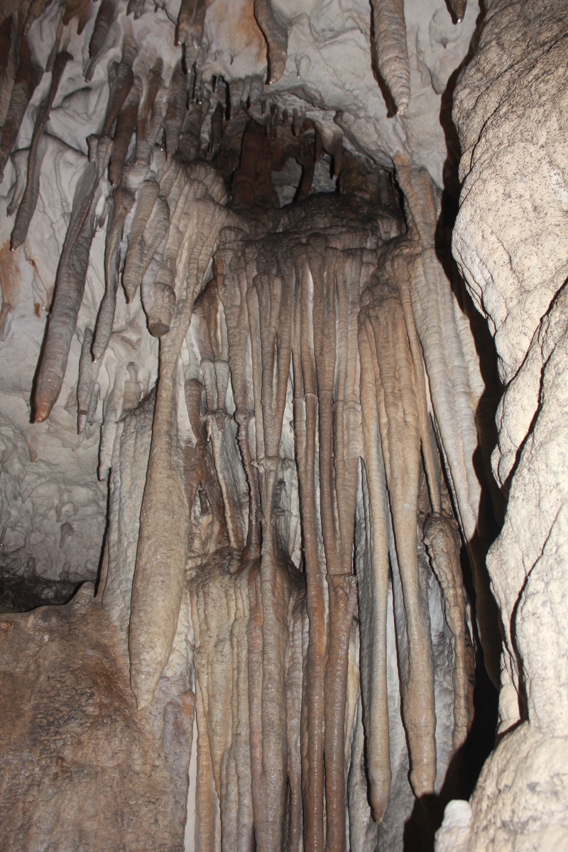 Молодой сталагнат и сталактиты в Большой Азишской Пещере -